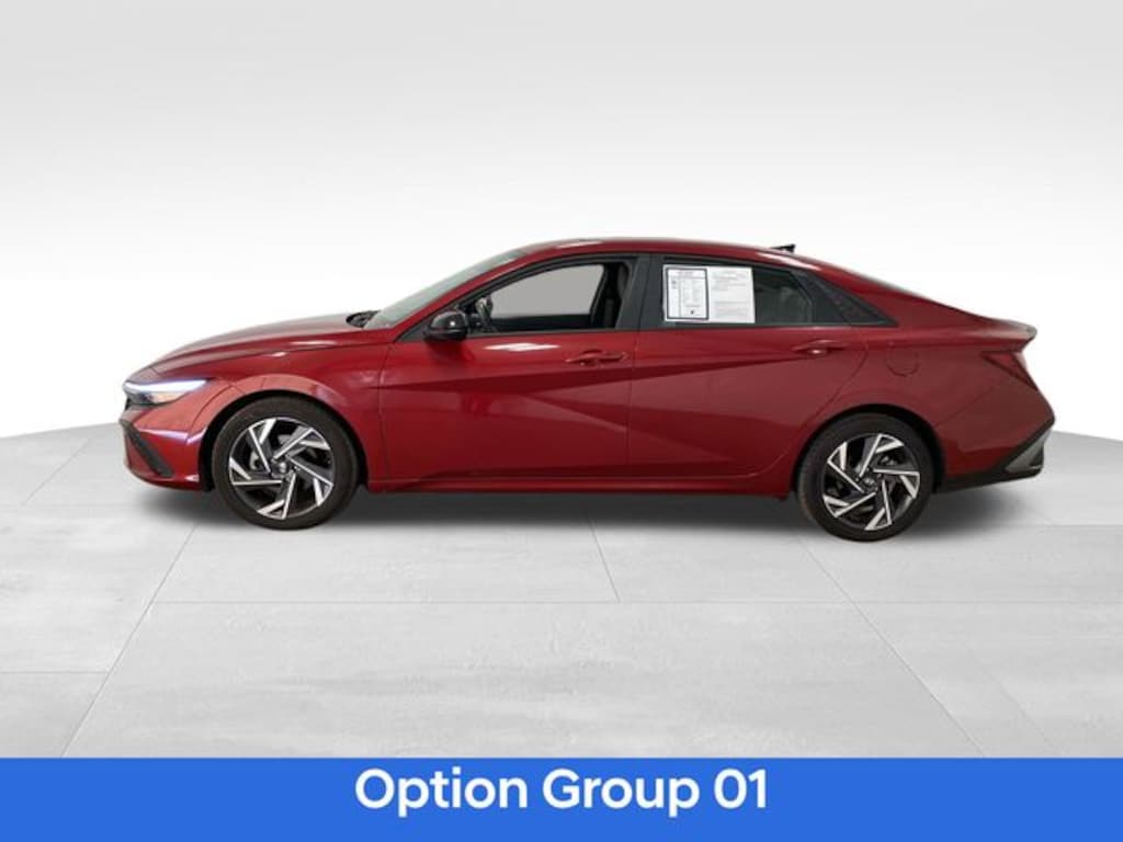 Elantra SEL Sport, Hyundai Certified Used Vehicles Certified, 4D Sedan, I4, CVT, FWD, Ultimate Red, Gray Cloth, Alloy wheels, Option Group 01, 17" x 7.0J Alloy Wheels, 4-Wheel Disc Brakes, 6 Speakers, ABS brakes, Air Conditioning, Alloy Door Sills, AM/FM radio, Apple CarPlay & Android Auto, Auto High-beam Headlights, Automatic temperature control, Brake assist, Bumpers: body-color, Cargo Net, Carpeted Floor Mats, Delay-off headlights, Driver door bin, Driver vanity mirror, Dual front impact airbags, Dual front side impact airbags, Electronic Stability Control, Exterior Parking Camera Rear, First Aid Kit, Front anti-roll bar, Front Bucket Seats, Front Center Armrest, Front dual zone A/C, Front reading lights, Front wheel independent suspension, Fully automatic headlights, Illuminated entry, Leather Shift Knob, Leather steering wheel, Low tire pressure warning, Occupant sensing airbag, Outside temperature display, Overhead airbag, Overhead console, Panic alarm, Passenger door bin, Passenger vanity mirror, Power door mirrors, Power steering, Power windows, Premium Cloth Seat Trim, Radio: AM/FM/HD Display Audio, Rear side impact airbag, Rear window defroster, Remote keyless entry, Reversible Cargo Tray, Security system, Speed control, Speed-sensing steering, Spoiler, Steering wheel mounted audio controls, Tachometer, Telescoping steering wheel, Tilt steering wheel, Traction control, Trip computer, Variably intermittent wipers, Elantra SEL Sport, 4D Sedan, I4, CVT, FWD, Ultimate Red, Gray Cloth, Alloy wheels, Option Group 01. Ultimate Red 2025 Hyundai Elantra SEL Sport FWD CVT I4