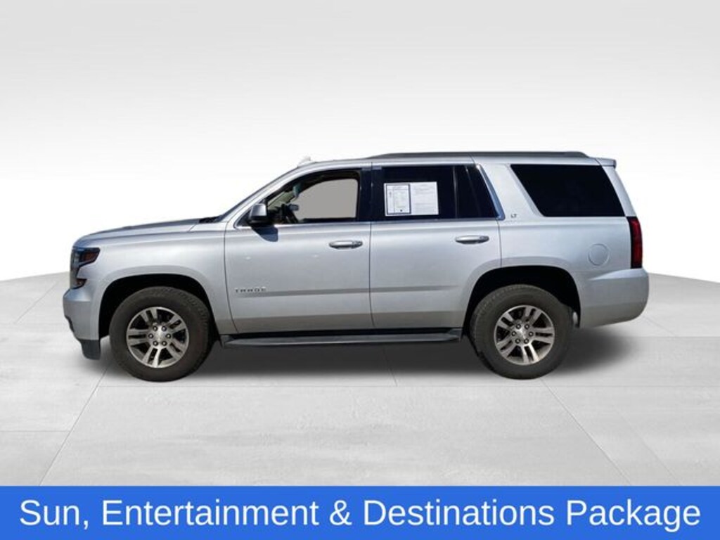Tahoe LT, 4D Sport Utility, EcoTec3 5.3L V8, 6-Speed Automatic Electronic with Overdrive, RWD, Silver Ice Metallic, Cocoa/Dune Leather, 1st & 2nd Row Color-Keyed Carpeted Floor Mats, 2nd Row 60/40 Split-Folding Manual Bench, 2nd Row Pwr Release 60/40 Split Folding Bench Seat, 3rd Row 60/40 Power Fold Split-Bench, 3rd Row Manual 60/40 Split-Folding Fold Flat Bench, 4-Wheel Antilock Disc Brakes w/Brake Assist, 5 12-Volt Auxiliary Power Outlets, Auto-Dimming Inside Rear-View Mirror, Black Assist Steps, Bose Premium 9-Speaker System, Cargo Net, Color-Keyed Carpeting Floor Covering, Driver Inboard & Front Passenger Airbags, Electronic Cruise Control w/Set & Resume Speed, Enhanced Driver Alert Package (Y86), Extended-Range Remote Keyless Entry, Floor Console, Fog Lamps, Forward Collision Alert, Front & Rear Park Assist, Front Passenger 6-Way Power Seat Adjuster, Hands Free Power Liftgate, Heated 2nd Row Seats, Heated Leather Wrapped Steering Wheel, IntelliBeam Headlamps, Lane Change Alert w/Side Blind Zone Alert, Lane Keep Assist w/Lane Departure Warning, Leather-Wrapped Steering Wheel, Low Speed Forward Automatic Braking, Luxury Package, Memory Settings, OnStar Basic Plan For 5 Years, Passive Entry System, Power Liftgate, Power Sunroof, Power Tilt & Telescopic Steering Column w/Memory, Power-Adjustable Accelerator & Brake Pedals, Power-Folding Heated Outside Mirrors, Preferred Equipment Group 1LT, Premium Smooth Ride Suspension Package, Push Button Keyless Start, Radio: Chevrolet MyLink w/Nav/AM/FM Stereo, Rear Cross-Traffic Alert, Rear Park Assist w/Audible Warning, Rear Seat Blu-Ray/DVD Entertainment System, Remote Vehicle Start, Roof-Mounted Luggage Rack Side Rails, SiriusXM Satellite Radio, Sun, Entertainment & Destinations Package, Universal Home Remote, 18" x 8.5" Aluminum Wheels, 3.08 Rear Axle Ratio, 3rd row seats: split-bench, 4-Wheel Disc Brakes, 9 Speakers, ABS brakes, Adjustable pedals, Air Conditioning, Alloy wheels, AM/FM radio: SiriusXM, Apple CarPlay/Android Auto, Auto High-beam Headlights, Auto-dimming Rear-View mirror, Automatic temperature control, Bluetooth® For Phone, Brake assist, Bumpers: body-color, CD player, Compass, Delay-off headlights, Driver door bin, Driver vanity mirror, Dual front impact airbags, Dual front side impact airbags, Electronic Stability Control, Emergency communication system: OnStar Guidance, Exterior Parking Camera Rear, Front anti-roll bar, Front Bucket Seats, Front Center Armrest, Front dual zone A/C, Front Heated Reclining Bucket Seats, Front reading lights, Front wheel independent suspension, Fully automatic headlights, Garage door transmitter, HD Radio, Heated door mirrors, Heated front seats, Illuminated entry, Leather-Appointed Seat Trim, Low tire pressure warning, Memory seat, Occupant sensing airbag, Outside temperature display, Overhead airbag, Overhead console, Panic alarm, Passenger door bin, Passenger vanity mirror, Pedal memory, Power door mirrors, Power driver seat, Power passenger seat, Power steering, Power windows, Premium audio system: Chevrolet MyLink, Radio: Chevrolet MyLink AM/FM Stereo, Rain sensing wipers, Rear air conditioning, Rear anti-roll bar, Rear reading lights, Rear seat center armrest, Rear window defroster, Rear window wiper, Remote keyless entry, Roof rack: rails only, Security system, Single-Slot CD/MP3 Player, SiriusXM NavTraffic, Speed control, Speed-sensing steering, Split folding rear seat, Spoiler, Steering wheel mounted audio controls, Tachometer, Telescoping steering wheel, Tilt steering wheel, Traction control, Trip computer, Variably intermittent wipers, Voltmeter, Tahoe LT, 4D Sport Utility, EcoTec3 5.3L V8, 6-Speed Automatic Electronic with Overdrive, RWD, Silver Ice Metallic, Cocoa/Dune Leather, 1st & 2nd Row Color-Keyed Carpeted Floor Mats, 2nd Row 60/40 Split-Folding Manual Bench, 2nd Row Pwr Release 60/40 Split Folding Bench Seat, 3rd Row 60/40 Power Fold Split-Bench, 3rd Row Manual 60/40 Split-Folding Fold Flat Bench, 4-Wheel Antiloc