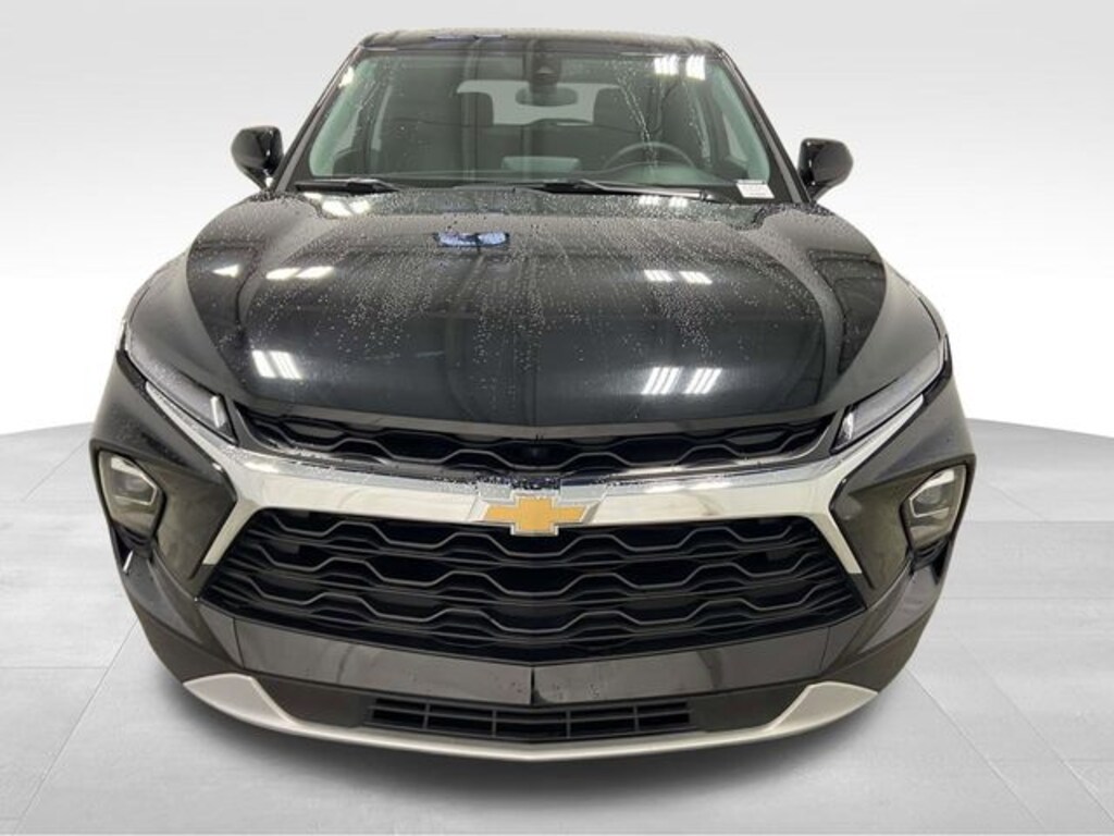 Blazer LT, 4D Sport Utility, 2.0L Turbocharged, FWD, Black, Jet Black/Medium Gray Cloth, Preferred Equipment Group 2LT, 170 Amp Alternator, 3.47 Final Drive Axle Ratio, 4-Way Manual Front Passenger Seat Adjuster, 4-Wheel Disc Brakes, 6 Speakers, 6-Speaker Audio System Feature, 8-Way Power Driver Seat Adjuster, ABS brakes, Air Conditioning, Alloy wheels, AM/FM radio: SiriusXM with 360L, Apple CarPlay/Android Auto, Auto High-beam Headlights, Automatic temperature control, Brake assist, Bumpers: body-color, Child-Seat-Sensing Airbag, Compass, Delay-off headlights, Driver door bin, Driver vanity mirror, Dual front impact airbags, Dual front side impact airbags, Electronic Stability Control, Emergency communication system: OnStar and Chevrolet connected services capable, Four wheel independent suspension, Front anti-roll bar, Front Bucket Seats, Front Center Armrest, Front dual zone A/C, Front reading lights, Fully automatic headlights, Heated door mirrors, Heated Driver & Front Passenger Seats, Heated front seats, Illuminated entry, Knee airbag, Leather Shift Knob, Low tire pressure warning, Occupant sensing airbag, Outside temperature display, Overhead airbag, Overhead console, Panic alarm, Passenger door bin, Passenger vanity mirror, Power door mirrors, Power Driver Lumbar Control, Power driver seat, Power steering, Power windows, Premium audio system: Chevrolet Infotainment 3 Plus, Premium Cloth Seat Trim, Radio data system, Radio: Chevrolet Infotainment 3 Plus System, Rear anti-roll bar, Rear reading lights, Rear seat center armrest, Rear window defroster, Rear window wiper, Remote keyless entry, Ride & Handling Suspension, Security system, SiriusXM w/360L, Speed control, Speed-sensing steering, Split folding rear seat, Spoiler, Steering wheel mounted audio controls, Stop-Start Engine Control System, Tachometer, Telescoping steering wheel, Tilt steering wheel, Traction control, Trip computer, Variably intermittent wipers, Voltmeter, Wheels: 18" Grazen Metallic Aluminum, Blazer LT, 4D Sport Utility, 2.0L Turbocharged, FWD, Black, Jet Black/Medium Gray Cloth, Preferred Equipment Group 2LT. Black 2025 Chevrolet Blazer LT FWD 9-Speed Automatic with Overdrive 2.0L Turbocharged