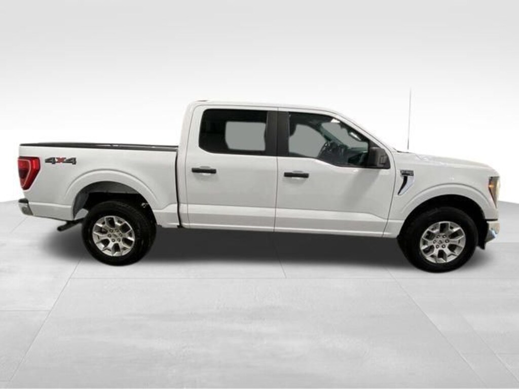 F-150 XLT, 5.0L V8, 10-Speed Automatic, 4WD, Oxford White, Black W/Medium Dark Slate Cloth, GVWR: 7,050 lbs Payload Package, 18" Silver Painted Aluminum Wheels, 3.31 Axle Ratio, 4-Wheel Disc Brakes, 6 Speakers, 8-Way Power Driver's Seat w/Power Lumbar, ABS brakes, Air Conditioning, Alloy wheels, AM/FM radio, Auto High-beam Headlights, Brake assist, Bumpers: chrome, Cloth 40/20/40 Front Seat, Compass, Delay-off headlights, Driver door bin, Driver vanity mirror, Dual front impact airbags, Dual front side impact airbags, Electronic Stability Control, Emergency communication system: SYNC 4 911 Assist, Exterior Parking Camera Rear, Front anti-roll bar, Front Center Armrest w/Storage, Front fog lights, Front License Plate Bracket, Front reading lights, Front wheel independent suspension, Fully automatic headlights, Heated door mirrors, Illuminated entry, Low tire pressure warning, Occupant sensing airbag, Outside temperature display, Overhead airbag, Overhead console, Panic alarm, Passenger door bin, Passenger vanity mirror, Power door mirrors, Power steering, Power windows, Radio data system, Radio: AM/FM Stereo w/6 Speakers, Rear reading lights, Rear step bumper, Rear window defroster, Remote keyless entry, Security system, Speed control, Speed-sensing steering, Split folding rear seat, Steering wheel mounted audio controls, SYNC 4, Tachometer, Telescoping steering wheel, Tilt steering wheel, Traction control, Trip computer, Variably intermittent wipers, Voltmeter, Wheels: 17" Silver Painted Aluminum, F-150 XLT, 5.0L V8, 10-Speed Automatic, 4WD, Oxford White, Black W/Medium Dark Slate Cloth, GVWR: 7,050 lbs Payload Package. Oxford White 2023 Ford F-150 XLT 4WD 10-Speed Automatic 5.0L V8
