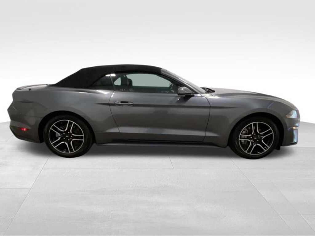 Mustang EcoBoost Premium, EcoBoost 2.3L I4 GTDi DOHC Turbocharged VCT, Gray Metallic, Ebony w/Leather-Trimmed Bucket Seats, 4-Wheel Disc Brakes, 4G LTE Wi-Fi Hotspot Removal, ABS brakes, Air Conditioning, Alloy wheels, AM/FM Stereo, Auto High-beam Headlights, Auto-dimming Rear-View mirror, Brake assist, Bumpers: body-color, Compass, Convertible roof lining, Delay-off headlights, Driver door bin, Driver vanity mirror, Dual front impact airbags, Dual front side impact airbags, Electronic Stability Control, Emergency communication system: 911 Assist, Exterior Parking Camera Rear, Four wheel independent suspension, Front anti-roll bar, Front Bucket Seats, Front Center Armrest, Front reading lights, Fully automatic headlights, Glass rear window, Illuminated entry, Knee airbag, Leather Shift Knob, Low tire pressure warning, Occupant sensing airbag, Outside temperature display, Overhead console, Panic alarm, Passenger door bin, Passenger vanity mirror, Power convertible roof, Power door mirrors, Power steering, Power windows, Radio data system, Rain sensing wipers, Rear anti-roll bar, Rear Parking Sensors, Rear window defroster, Remote keyless entry, Security system, SiriusXM Radio, Speed control, Speed-sensing steering, Speed-Sensitive Wipers, Steering wheel mounted audio controls, SYNC 3 Communications & Entertainment System, Tachometer, Telescoping steering wheel, Tilt steering wheel, Traction control, Trip computer, Variably intermittent wipers, Voltmeter, Wheels: 18" x 8" Machined-Face Aluminum, Mustang EcoBoost Premium, EcoBoost 2.3L I4 GTDi DOHC Turbocharged VCT, Gray Metallic, Ebony w/Leather-Trimmed Bucket Seats. Gray Metallic 2023 Ford Mustang EcoBoost Premium RWD 10-Speed Automatic EcoBoost 2.3L I4 GTDi DOHC Turbocharged VCT