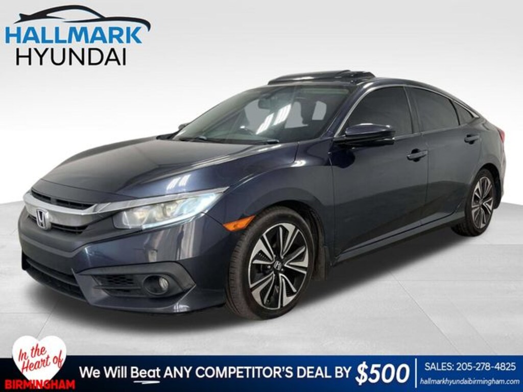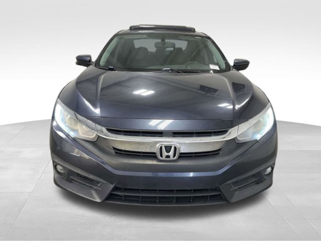 Civic EX-L, 4D Sedan, 1.5L I-4 DI DOHC Turbocharged, CVT, FWD, Modern Steel Metallic, Black w/Leather Seat Trim, 4-Wheel Disc Brakes, 8 Speakers, ABS brakes, Air Conditioning, Alloy wheels, AM/FM radio: SiriusXM, Apple CarPlay/Android Auto, Auto-dimming Rear-View mirror, Automatic temperature control, Brake assist, Bumpers: body-color, Compass, Delay-off headlights, Driver door bin, Driver vanity mirror, Dual front impact airbags, Dual front side impact airbags, Electronic Stability Control, Emergency communication system: HondaLink Assist, Exterior Parking Camera Rear, Four wheel independent suspension, Front anti-roll bar, Front Bucket Seats, Front Center Armrest, Front dual zone A/C, Front fog lights, Front reading lights, Fully automatic headlights, Heated door mirrors, Heated front seats, Illuminated entry, Leather Seat Trim, Leather Shift Knob, Low tire pressure warning, Occupant sensing airbag, Outside temperature display, Overhead airbag, Panic alarm, Passenger door bin, Passenger vanity mirror, Power door mirrors, Power driver seat, Power moonroof, Power steering, Power windows, Radio data system, Radio: 180-Watt AM/FM/HD/SiriusXM Audio System, Rear anti-roll bar, Rear seat center armrest, Rear window defroster, Reclining Heated Front Bucket Seats, Remote keyless entry, Security system, Speed control, Speed-sensing steering, Speed-Sensitive Wipers, Split folding rear seat, Spoiler, Steering wheel mounted audio controls, Tachometer, Telescoping steering wheel, Tilt steering wheel, Traction control, Trip computer, Variably intermittent wipers, Civic EX-L, 4D Sedan, 1.5L I-4 DI DOHC Turbocharged, CVT, FWD, Modern Steel Metallic, Black w/Leather Seat Trim. Modern Steel Metallic 2016 Honda Civic EX-L FWD CVT 1.5L I-4 DI DOHC Turbocharged
