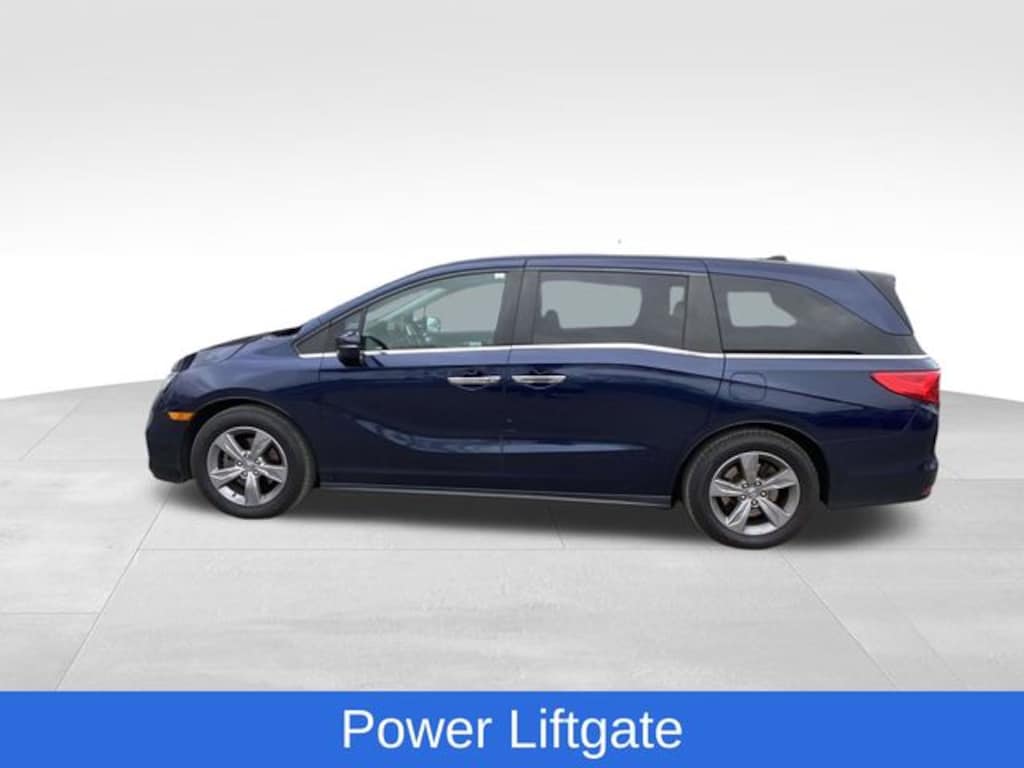Odyssey EX-L, 4D Passenger Van, 3.5L V6 SOHC i-VTEC 24V, 9-Speed Automatic, FWD, Beige w/Leather Seat Trim, Power Liftgate, Power moonroof, 3rd row seats: split-bench, 4-Wheel Disc Brakes, 4.33 Axle Ratio, 7 Speakers, A/V remote: CabinControl, ABS brakes, Air Conditioning, Alloy wheels, AM/FM radio: SiriusXM, Anti-whiplash front head restraints, Apple CarPlay/Android Auto, Auto High-beam Headlights, Auto-dimming Rear-View mirror, Automatic temperature control, Blind Spot Information (BSI) System warning, Brake assist, Bumpers: body-color, Delay-off headlights, Driver door bin, Driver vanity mirror, Driver's Seat Mounted Armrest, Dual front impact airbags, Dual front side impact airbags, Electronic Stability Control, Emergency communication system: HondaLink, Exterior Parking Camera Rear, Forward collision: Collision Mitigation Braking System (CMBS) + FCW mitigation, Four wheel independent suspension, Front anti-roll bar, Front Bucket Seats, Front dual zone A/C, Front fog lights, Front reading lights, Fully automatic headlights, Garage door transmitter: HomeLink, Heated door mirrors, Heated Front Bucket Seats, Heated front seats, Illuminated entry, Knee airbag, Lane departure: Lane Keeping Assist System (LKAS) active, Leather Seat Trim, Leather steering wheel, Low tire pressure warning, Memory seat, Occupant sensing airbag, Outside temperature display, Overhead airbag, Overhead console, Panic alarm, Passenger door bin, Passenger seat mounted armrest, Passenger vanity mirror, Power door mirrors, Power driver seat, Power passenger seat, Power steering, Power windows, Radio data system, Radio: 160-Watt AM/FM/HD/SiriusXM Audio System, Rear air conditioning, Rear anti-roll bar, Rear reading lights, Rear seat center armrest, Rear window defroster, Rear window wiper, Reclining 3rd row seat, Remote keyless entry, Security system, Speed control, Speed-sensing steering, Speed-Sensitive Wipers, Split folding rear seat, Spoiler, Steering wheel mounted audio controls, Tachometer, Telescoping steering wheel, Tilt steering wheel, Traction control, Trip computer, Turn signal indicator mirrors, Variably intermittent wipers, Wheels: 18" Dark Silver-Painted Alloy, Odyssey EX-L, 4D Passenger Van, 3.5L V6 SOHC i-VTEC 24V, 9-Speed Automatic, FWD, Beige w/Leather Seat Trim, Power Liftgate, Power moonroof. Obsidian Blue Pearl 2019 Honda Odyssey EX-L FWD 9-Speed Automatic 3.5L V6 SOHC i-VTEC 24V
