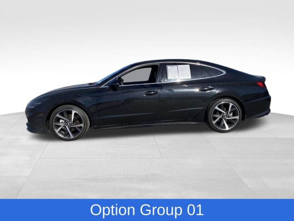 Sonata SEL Plus, 4D Sedan, I4, 8-Speed Automatic with SHIFTRONIC, FWD, Onyx Black, Black Artificial Leather, Navigation System, Option Group 01, Power moonroof, 12 Speakers, 19" x 8.0J Aluminum Alloy Wheels, 4-Wheel Disc Brakes, ABS brakes, Air Conditioning, All-Season Fitted Liners, Alloy wheels, AM/FM radio: SiriusXM, Apple CarPlay & Android Auto, Auto High-beam Headlights, Auto-dimming Rear-View mirror, Automatic temperature control, Brake assist, Bumpers: body-color, Carpeted Floor Mats, Delay-off headlights, Driver door bin, Driver vanity mirror, Dual front impact airbags, Dual front side impact airbags, Electronic Stability Control, Emergency communication system: Blue Link Connected Car Service (3-year complimentary subscription), Exterior Parking Camera Rear, First Aid Kit, Four wheel independent suspension, Front anti-roll bar, Front Bucket Seats, Front Center Armrest, Front dual zone A/C, Front reading lights, Fully automatic headlights, Heated door mirrors, Heated Front Bucket Seats, Heated front seats, Illuminated entry, Knee airbag, Leather steering wheel, Leatherette/Suede Combination Seating Surfaces, Low tire pressure warning, Mud Guards, Occupant sensing airbag, Outside temperature display, Overhead airbag, Overhead console, Panic alarm, Passenger door bin, Passenger vanity mirror, Power door mirrors, Power driver seat, Power steering, Power windows, Radio data system, Radio: AM/FM/MP3/HD/SiriusXM Display Audio w/Nav, Rear anti-roll bar, Rear seat center armrest, Rear side impact airbag, Rear window defroster, Remote keyless entry, Security system, Speed control, Speed-sensing steering, Speed-Sensitive Wipers, Split folding rear seat, Steering wheel mounted audio controls, Tachometer, Telescoping steering wheel, Tilt steering wheel, Traction control, Trip computer, Trunk Cargo Net, Turn signal indicator mirrors, Variably intermittent wipers, Sonata SEL Plus, 4D Sedan, I4, 8-Speed Automatic with SHIFTRONIC, FWD, Onyx Black, Black Artificial Leather, Navigation System, Option Group 01, Power moonroof. Onyx Black 2023 Hyundai Sonata SEL Plus FWD 8-Speed Automatic with SHIFTRONIC I4