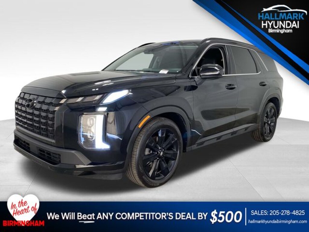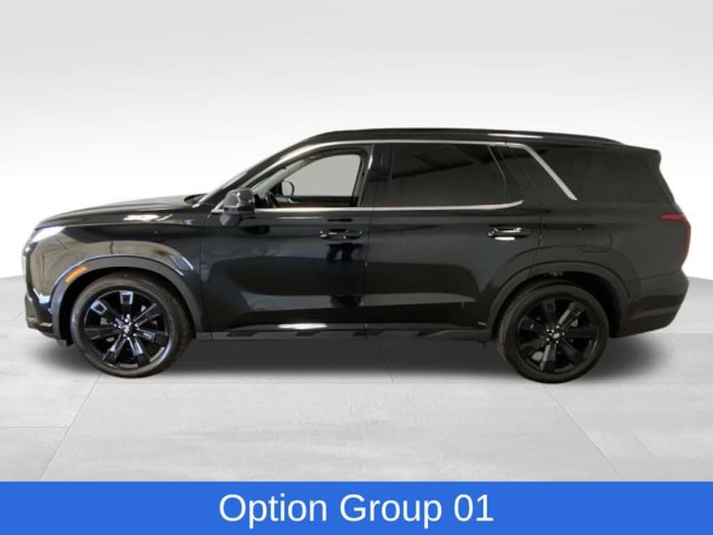 Palisade XRT, 4D Sport Utility, V6, 8-Speed Automatic with SHIFTRONIC, FWD, Abyss Black Pearl, Black Artificial Leather, Navigation System, Option Group 01, 3.510 Axle Ratio, 3rd row seats: split-bench, 4-Wheel Disc Brakes, 6 Speakers, ABS brakes, Air Conditioning, Alloy wheels, AM/FM radio: SiriusXM, Apple CarPlay & Android Auto, Auto High-beam Headlights, Auto-dimming door mirrors, Auto-dimming Rear-View mirror, Auto-leveling suspension, Automatic temperature control, Brake assist, Bumpers: body-color, Cargo Cover/Screen, Cargo Net, Cargo Tray, Carpeted Floor Mats, Delay-off headlights, Driver door bin, Driver vanity mirror, Dual front impact airbags, Dual front side impact airbags, Electronic Stability Control, Emergency communication system, Exterior Parking Camera Rear, First Aid Kit, Four wheel independent suspension, Front anti-roll bar, Front Bucket Seats, Front Center Armrest, Front dual zone A/C, Front reading lights, Fully automatic headlights, H-Tex Leatherette Seat Trim, Heated door mirrors, Heated Front Bucket Seats, Heated front seats, Illuminated entry, Knee airbag, Low tire pressure warning, Occupant sensing airbag, Outside temperature display, Overhead airbag, Overhead console, Panic alarm, Passenger door bin, Passenger vanity mirror, Power door mirrors, Power driver seat, Power Liftgate, Power moonroof, Power passenger seat, Power steering, Power windows, Radio data system, Radio: AM/FM/MP3 Audio System, Rear air conditioning, Rear anti-roll bar, Rear audio controls, Rear reading lights, Rear side impact airbag, Rear window defroster, Rear window wiper, Reclining 3rd row seat, Remote keyless entry, Roof rack, Security system, Speed control, Speed-sensing steering, Split folding rear seat, Spoiler, Steering wheel mounted audio controls, Tachometer, Telescoping steering wheel, Tilt steering wheel, Traction control, Trip computer, Turn signal indicator mirrors, Variably intermittent wipers, Wheel Locks, Wheels: 20" x 7.5J Dark Alloy w/Rugged Styling, Palisade XRT, 4D Sport Utility, V6, 8-Speed Automatic with SHIFTRONIC, FWD, Abyss Black Pearl, Black Artificial Leather, Navigation System, Option Group 01. Abyss Black Pearl 2024 Hyundai Palisade XRT FWD 8-Speed Automatic with SHIFTRONIC V6