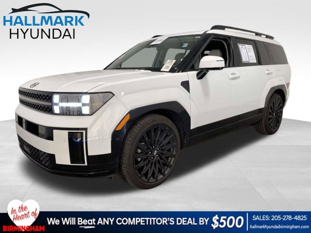 Santa Fe Calligraphy, 4D Sport Utility, 2.5L I4, Shiftronic, AWD, Serenity White, Gray w/Leather Seat Trim, Navigation System, Option Group 01, Power Liftgate, Power moonroof, Wheels: 21" x 8.5J Unique Dark Finish Alloy, 12 Speakers, 3rd row seats: bench, 4-Wheel Disc Brakes, ABS brakes, Air Conditioning, Alloy wheels, AM/FM radio: SiriusXM, Apple CarPlay & Android Auto, Auto High-beam Headlights, Auto-dimming Rear-View mirror, Automatic temperature control, Axle Ratio: 3.316, Brake assist, Bumpers: body-color, Carpeted Floor Mats, Delay-off headlights, Driver door bin, Driver vanity mirror, Dual front impact airbags, Dual front side impact airbags, Electronic Stability Control, Emergency communication system, Exterior Parking Camera Rear, Four wheel independent suspension, Front anti-roll bar, Front Bucket Seats, Front Center Armrest, Front dual zone A/C, Front reading lights, Fully automatic headlights, Garage door transmitter: HomeLink, Heads-Up Display, Heated & Ventilated Front Bucket Seats, Heated door mirrors, Heated front seats, Heated rear seats, Heated steering wheel, Illuminated entry, Knee airbag, Leather steering wheel, Low tire pressure warning, Memory seat, Occupant sensing airbag, Outside temperature display, Overhead airbag, Overhead console, Panic alarm, Passenger door bin, Passenger vanity mirror, Power door mirrors, Power driver seat, Power passenger seat, Power steering, Power windows, Quilted Premium Nappa Leather Seat Trim, Radio: AM/FM/HD Bose Premium Audio System, Rain sensing wipers, Rear anti-roll bar, Rear side impact airbag, Rear window defroster, Rear window wiper, Remote keyless entry, Security system, Speed control, Speed-sensing steering, Split folding rear seat, Spoiler, Steering wheel mounted audio controls, Tachometer, Telescoping steering wheel, Tilt steering wheel, Traction control, Trip computer, Turn signal indicator mirrors, Variably intermittent wipers, Ventilated front seats, Santa Fe Calligraphy, 4D Sport Utility, 2.5L I4, Shiftronic, AWD, Serenity White, Gray w/Leather Seat Trim, Navigation System, Option Group 01, Power Liftgate, Power moonroof, Wheels: 21" x 8.5J Unique Dark Finish Alloy. Serenity White 2024 Hyundai Santa Fe Calligraphy AWD Shiftronic 2.5L I4