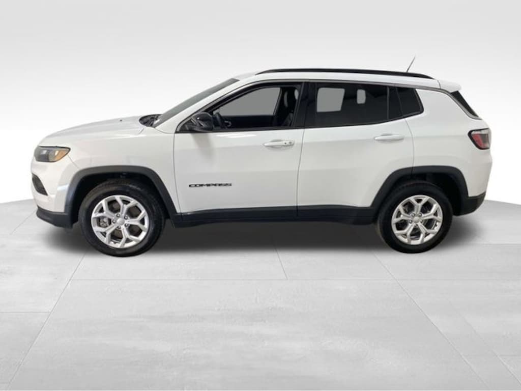 Compass Latitude, 4D Sport Utility, 4WD, Bright White Clearcoat, Black Cloth, Quick Order Package 29J Latitude, 17" x 7" Aluminum Wheels, 3.73 Final Drive Ratio, 4-Wheel Disc Brakes, 6 Speakers, ABS brakes, Air Conditioning, Alloy wheels, AM/FM radio: SiriusXM, Auto High-beam Headlights, Brake assist, Bumpers: body-color, Compass, Delay-off headlights, Driver door bin, Driver vanity mirror, Dual front impact airbags, Dual front side impact airbags, Electronic Stability Control, Emergency communication system: Jeep Connect, Four wheel independent suspension, Front anti-roll bar, Front Bucket Seats, Front Center Armrest w/Storage, Front fog lights, Front License Plate Bracket, Front reading lights, Fully automatic headlights, Heated door mirrors, Illuminated entry, Knee airbag, Leather Shift Knob, Leather steering wheel, Low tire pressure warning, Occupant sensing airbag, Outside temperature display, Overhead airbag, Overhead console, Panic alarm, ParkView Rear Back-Up Camera, Passenger door bin, Passenger vanity mirror, Power door mirrors, Power steering, Power windows, Premium Cloth/Vinyl Bucket Seats, Radio: Uconnect 5 w/10.1" Display, Rear anti-roll bar, Rear seat center armrest, Rear window defroster, Rear window wiper, Remote keyless entry, Security system, Speed control, Split folding rear seat, Spoiler, Steering wheel mounted audio controls, Tachometer, Telescoping steering wheel, Tilt steering wheel, Traction control, Trip computer, Variably intermittent wipers, Compass Latitude, 4D Sport Utility, 4WD, Bright White Clearcoat, Black Cloth, Quick Order Package 29J Latitude. Bright White Clearcoat 2024 Jeep Compass Latitude 4WD 8-Speed Automatic 2.0L I4 DOHC