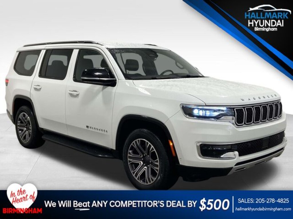 Wagoneer Series II, 8-Speed Automatic, 4WD, Bright White Clearcoat, Black Leather, Navigation System, Quick Order Package 25J, 10 Speakers, 118 MPH Maximum Speed Calibration, 3.55 Rear Axle Ratio, 3rd row seats: bench, 4-Wheel Disc Brakes, 8-Passenger Seating, ABS brakes, Adjustable pedals, Air Conditioning, Alloy wheels, AM/FM radio: SiriusXM with 360L, Anti-whiplash front head restraints, Apple CarPlay/Android Auto, Audio memory, Auto-dimming door mirrors, Auto-dimming Rear-View mirror, Auto-leveling suspension, Automatic temperature control, Brake assist, Bumpers: body-color, Compass, Delay-off headlights, Driver door bin, Driver vanity mirror, Driver's Seat Mounted Armrest, Dual front impact airbags, Dual front side impact airbags, Electronic Stability Control, Emergency communication system: Wagoneer Connect, Exterior Parking Camera Rear, Four wheel independent suspension, Front anti-roll bar, Front Bucket Seats, Front Center Armrest w/Storage, Front dual zone A/C, Front fog lights, Front reading lights, Fully automatic headlights, Garage door transmitter, Genuine wood console insert, Genuine wood dashboard insert, Genuine wood door panel insert, Heated door mirrors, Heated front seats, Heated rear seats, Heated steering wheel, Illuminated entry, Knee airbag, Leather Trimmed Bucket Seats, Low tire pressure warning, Memory seat, Normal Duty Suspension, Occupant sensing airbag, Outside temperature display, Overhead airbag, Overhead console, Panic alarm, Passenger door bin, Passenger seat mounted armrest, Passenger vanity mirror, Pedal memory, Power adjustable front head restraints, Power door mirrors, Power driver seat, Power Liftgate, Power passenger seat, Power steering, Power windows, Radio data system, Radio: Uconnect 5 Nav w/10.1" Display, Rain sensing wipers, Rear air conditioning, Rear anti-roll bar, Rear dual zone A/C, Rear reading lights, Rear seat center armrest, Rear window defroster, Rear window wiper, Reclining 3rd row seat, Remote keyless entry, Security system, Speed control, Speed-sensing steering, Speed-Sensitive Wipers, Split folding rear seat, Steering wheel memory, Steering wheel mounted audio controls, Tachometer, Telescoping steering wheel, Tilt steering wheel, Traction control, Trip computer, Turn signal indicator mirrors, Variably intermittent wipers, Ventilated front seats, Voltmeter, Wheels: 20" x 9.0" Premium 2 Aluminum, Wagoneer Series II, 8-Speed Automatic, 4WD, Bright White Clearcoat, Black Leather, Navigation System, Quick Order Package 25J. Bright White Clearcoat 2024 Jeep Wagoneer Series II 4WD 8-Speed Automatic 3.0L I6