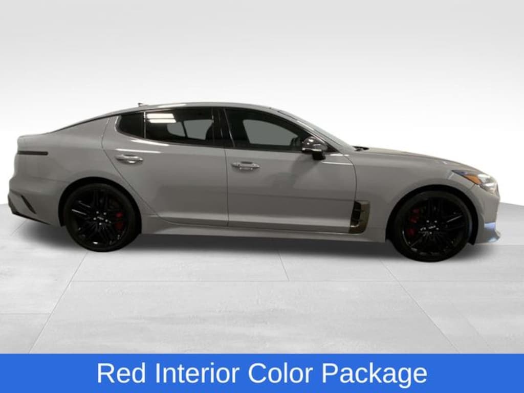 Stinger GT1, 4D Sedan, 3.3L V6 DGI, 8-Speed Automatic, RWD, Ceramic Silver, Black Leather, Navigation System, Red Interior Color Package, Red Leather Seat Trim, 4-Wheel Disc Brakes, 9 Speakers, ABS brakes, Air Conditioning, Alloy wheels, AM/FM radio: SiriusXM, Anti-whiplash front head restraints, Apple CarPlay & Android Auto, Auto High-beam Headlights, Auto-dimming Rear-View mirror, Automatic temperature control, Brake assist, Bumpers: body-color, Cargo Mat, Carpeted Floor Mat, Delay-off headlights, Driver door bin, Driver vanity mirror, Dual front impact airbags, Dual front side impact airbags, Electronic Stability Control, Emergency communication system: UVO eServices, Exterior Parking Camera Rear, Four wheel independent suspension, Front anti-roll bar, Front Bucket Seats, Front Center Armrest, Front dual zone A/C, Front reading lights, Fully automatic headlights, harman/kardon® Speakers, Heated door mirrors, Heated Front Bucket Seats, Heated front seats, Illuminated entry, Knee airbag, Leather Seat Trim, Low tire pressure warning, Occupant sensing airbag, Outside temperature display, Overhead airbag, Overhead console, Panic alarm, Passenger door bin, Passenger vanity mirror, Power door mirrors, Power driver seat, Power moonroof, Power passenger seat, Power steering, Power windows, Radio: AM/FM/HD Audio System, Rain sensing wipers, Rear air conditioning, Rear anti-roll bar, Rear reading lights, Rear seat center armrest, Rear window defroster, Remote keyless entry, Security system, Smart Key w/ Push Button and Remote Start, Speed control, Speed-sensing steering, Speed-Sensitive Wipers, Split folding rear seat, Sport steering wheel, Steering wheel mounted audio controls, Tachometer, Telescoping steering wheel, Tilt steering wheel, Traction control, Trip computer, Turn signal indicator mirrors, Variably intermittent wipers, Wheels: 8.0J x 19 Front/8.5J x 19 Rear Alloy, Stinger GT1, 4D Sedan, 3.3L V6 DGI, 8-Speed Automatic, RWD, Ceramic Silver, Black Leather, Navigation System, Red Interior Color Package, Red Leather Seat Trim. Ceramic Silver 2022 Kia Stinger GT1 RWD 8-Speed Automatic 3.3L V6 DGI