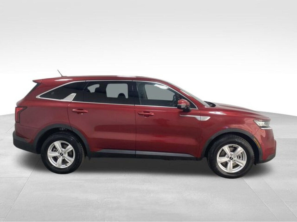 Sorento LX, 4D Sport Utility, 8-Speed Automatic, FWD, Passion Red Tintcoat, Black w/Cloth Seat Trim, 3.798 Axle Ratio, 3rd row seats: split-bench, 4-Wheel Disc Brakes, 6 Speakers, 7.0J x 17" Alloy Wheels, ABS brakes, Air Conditioning, Alloy wheels, AM/FM radio, Apple CarPlay & Android Auto, Auto High-beam Headlights, Brake assist, Bumpers: body-color, Carpet Floor Mats, Cloth Seat Trim, Delay-off headlights, Driver door bin, Driver vanity mirror, Dual front impact airbags, Dual front side impact airbags, Electronic Stability Control, Exterior Parking Camera Rear, Four wheel independent suspension, Front anti-roll bar, Front Bucket Seats, Front Center Armrest, Front reading lights, Fully automatic headlights, Heated door mirrors, Illuminated entry, Knee airbag, Low tire pressure warning, Occupant sensing airbag, Outside temperature display, Overhead airbag, Overhead console, Panic alarm, Passenger door bin, Passenger vanity mirror, Power door mirrors, Power steering, Power windows, Radio data system, Radio: AM/FM Audio System, Rear anti-roll bar, Rear reading lights, Rear seat center armrest, Rear window defroster, Rear window wiper, Remote keyless entry, Security system, Speed control, Speed-sensing steering, Split folding rear seat, Spoiler, Steering wheel mounted audio controls, Tachometer, Telescoping steering wheel, Tilt steering wheel, Traction control, Trip computer, Turn signal indicator mirrors, Variably intermittent wipers, Sorento LX, 4D Sport Utility, 8-Speed Automatic, FWD, Passion Red Tintcoat, Black w/Cloth Seat Trim. Passion Red Tintcoat 2023 Kia Sorento LX FWD 8-Speed Automatic 2.5L I4 DGI DOHC 16V LEV3-ULEV70 191hp