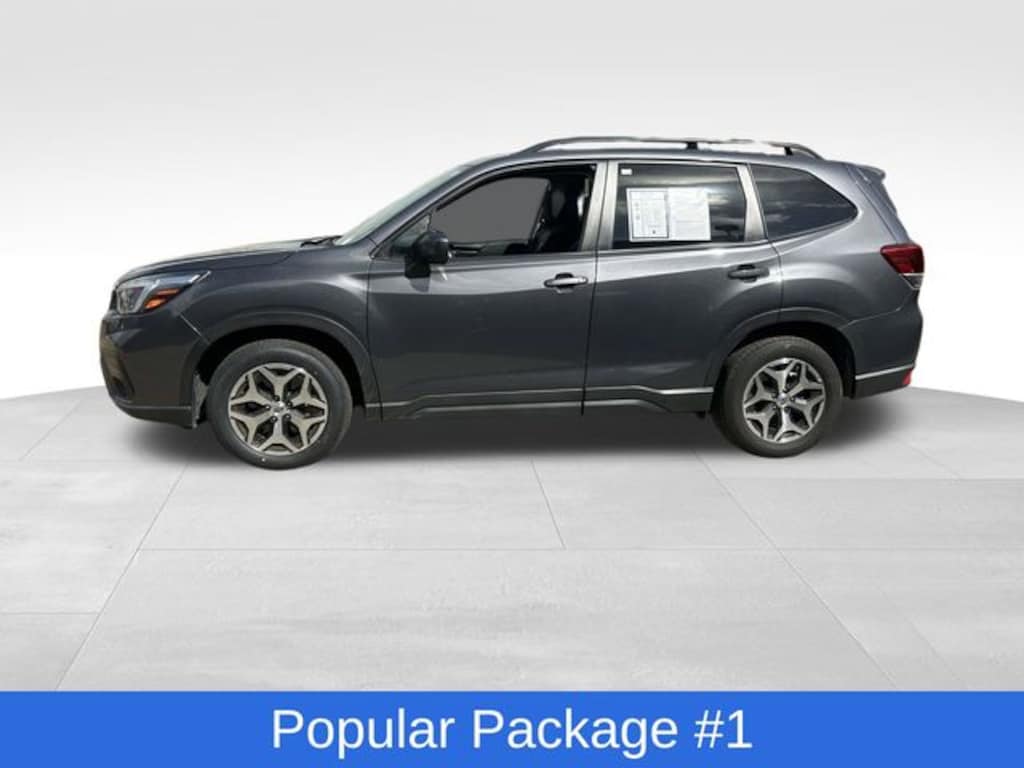 Forester Premium, 4D Sport Utility, 2.5L 4-Cylinder DOHC 16V VVT, Lineartronic CVT, AWD, Magnetite Gray Metallic, Black w/Cloth Upholstery, All-Weather Floor Liners, Auto-Dimming Exterior Mirror w/Approach Lighting, Auto-Dimming Mirror w/Compass & HomeLink, Cargo Tray, Popular Package #1, Rear Bumper Cover, Standard Model, 3.70 Axle Ratio, 4-Wheel Disc Brakes, 6 Speakers, ABS brakes, Air Conditioning, Alloy wheels, AM/FM radio: SiriusXM, Auto High-beam Headlights, Automatic temperature control, Brake assist, Bumpers: body-color, Cargo Net, CD player, Cloth Upholstery, Dome Light LED Upgrade, Driver door bin, Driver vanity mirror, Dual front impact airbags, Dual front side impact airbags, Electronic Stability Control, Emergency communication system: STARLINK Safety and Security (Subscription Required), Exterior Parking Camera Rear, Four wheel independent suspension, Front anti-roll bar, Front Bucket Seats, Front Center Armrest, Front fog lights, Front reading lights, Fully automatic headlights, Heated door mirrors, Heated Front Bucket Seats, Heated front seats, Illuminated entry, Knee airbag, Low tire pressure warning, Occupant sensing airbag, Outside temperature display, Overhead airbag, Overhead console, Panic alarm, Passenger door bin, Passenger vanity mirror, Power door mirrors, Power driver seat, Power moonroof: Panoramic, Power steering, Power windows, Radio data system, Radio: Subaru Starlink 6.5" Multimedia Plus System, Rear anti-roll bar, Rear seat center armrest, Rear window defroster, Rear window wiper, Remote keyless entry, Roof rack: rails only, Security system, Speed control, Speed-sensing steering, Split folding rear seat, Spoiler, STARLINK/Apple CarPlay/Android Auto, Steering wheel mounted audio controls, Tachometer, Telescoping steering wheel, Tilt steering wheel, Traction control, Trip computer, Variably intermittent wipers, Wheels: 17" x 7.0J Black Machine Finish Alloy, Forester Premium, 4D Sport Utility, 2.5L 4-Cylinder DOHC 16V VVT, Lineartronic CVT, AWD, Magnetite Gray Metallic, Black w/Cloth Upholstery, All-Weather Floor Liners, Auto-Dimming Exterior Mirror w/Approach Lighting, Auto-Dimming Mirror w/Compass & HomeLink, Cargo Tray, Popular Package #1, Rear Bumper Cover, Standard Model. Magnetite Gray Metallic 2021 Subaru Forester Premium AWD Lineartronic CVT 2.5L 4-Cylinder DOHC 16V VVT