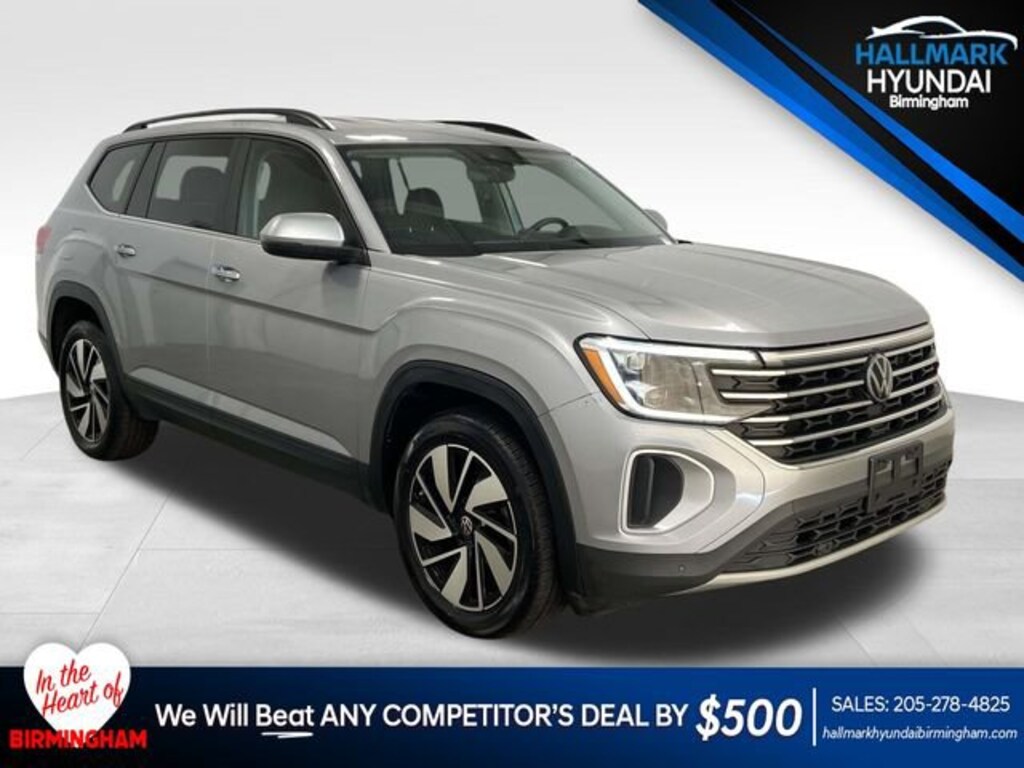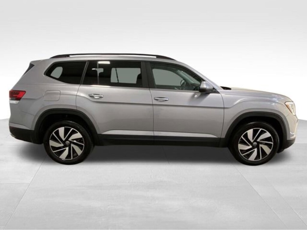 Atlas 2.0T SE w/Technology, 2.0L TSI, Silver Mist Metallic, Titan Black w/Perforated V-Tex Leatherette Seating Surfaces, 3.60 Axle Ratio, 3rd row seats: split-bench, 4-Wheel Disc Brakes, 6 Speakers, ABS brakes, Air Conditioning, Alloy wheels, AM/FM radio: SiriusXM with 360L, Auto-dimming Rear-View mirror, Automatic temperature control, Brake assist, Bumpers: body-color, Compass, Delay-off headlights, Driver door bin, Driver vanity mirror, Dual front impact airbags, Dual front side impact airbags, Electronic Stability Control, Emergency communication system: VW Car-Net Safe & Secure 5-year, Exterior Parking Camera Rear, Four wheel independent suspension, Front anti-roll bar, Front Bucket Seats, Front Center Armrest, Front dual zone A/C, Front fog lights, Front reading lights, Fully automatic headlights, Heated door mirrors, Heated front seats, Heated steering wheel, Heated/Actively Ventilated Front Bucket Seats, Illuminated entry, Low tire pressure warning, Occupant sensing airbag, Outside temperature display, Overhead airbag, Overhead console, Panic alarm, Passenger door bin, Passenger vanity mirror, Perforated V-Tex Leatherette Seating Surfaces, Power door mirrors, Power driver seat, Power Liftgate, Power steering, Power windows, Radio data system, Radio: MIB3 Composition Media, Rain sensing wipers, Rear air conditioning, Rear anti-roll bar, Rear reading lights, Rear seat center armrest, Rear window defroster, Rear window wiper, Remote keyless entry, Security system, Speed control, Speed-sensing steering, Split folding rear seat, Spoiler, Standard Suspension, Steering wheel mounted audio controls, Tachometer, Telescoping steering wheel, Tilt steering wheel, Traction control, Trip computer, Turn signal indicator mirrors, Variably intermittent wipers, Ventilated front seats, Wheels: 20" 2-Tone Machined Alloy, Atlas 2.0T SE w/Technology, 2.0L TSI, Silver Mist Metallic, Titan Black w/Perforated V-Tex Leatherette Seating Surfaces. Silver Mist Metallic 2024 Volkswagen Atlas 2.0T SE w/Technology AWD 8-Speed Automatic with Tiptronic 2.0L TSI